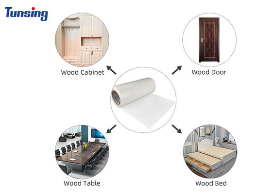 टीपीयू गर्म पिघलने चिपकने वाली फिल्म ग्लासिन रिलीज़ पेपर के साथ कम तापमान सक्रियण अनुकूलन योग्य चौड़ाई मोटाई उच्च शक्ति गर्म पिघलने चिपकने वाली फिल्म बंधन के लिए एमडीएफ लकड़ी