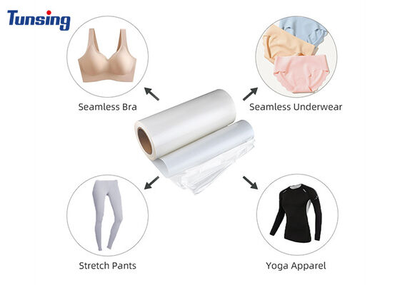 लाइक्रा के लिए गर्म पिघल चिपकने वाली फिल्म उच्च खिंचाव कपड़े निर्बाध बंधन कपड़े उच्च तापमान गर्म टीपीयू पिघल चिपकने वाली लेमिनेटिंग फिल्म योग कोलिंग के लिए